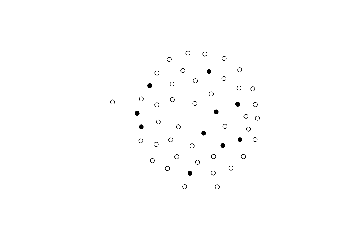net_b <- simulate(net_b ~ edges + Log(~b1star(2)), coef = c(-3, 1.5), seed = 55)Let’s see what we got here: