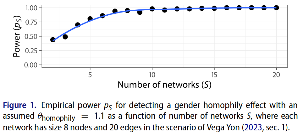 • Using conditional ERGMs (closely related to constrained), we can do power analysis for network samples (Vega Yon 2023).